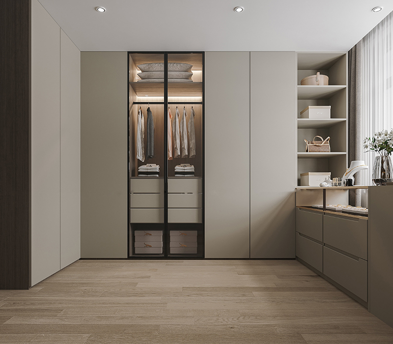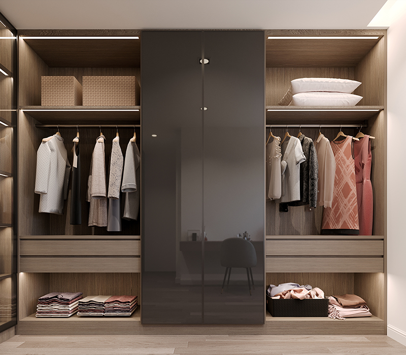Yüksek parlaklığı ve cam benzeri görünümüyle dikkat çeken akrilik paneller, modern gardıroplarda sıklıkla tercih edilir. Kolay temizlenebilir ve çizilmeye karşı dirençlidir. Kapaklarda kullanılan akrilik malzeme; zarif, parlak ve güçlü yüzeyi ile yatak odalarınıza prestij katar.